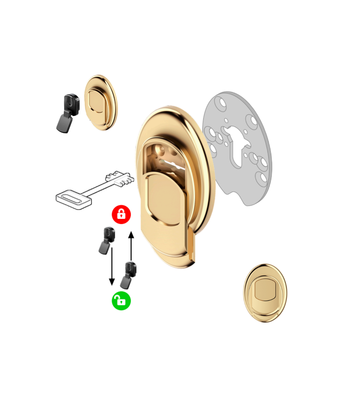 The magnetic key unlocks the sliding of the outer plate allowing the key to be introduced.